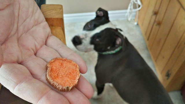 Sweet Pawtato Pooch Chips from BrainyCakes Dog Barkery (Mission, BC). Approximate Cost is $5. Perfect snack to pop in your pocket to take for a walk or run. The goo loves sweet potato just-about-anything so these should do nicely!